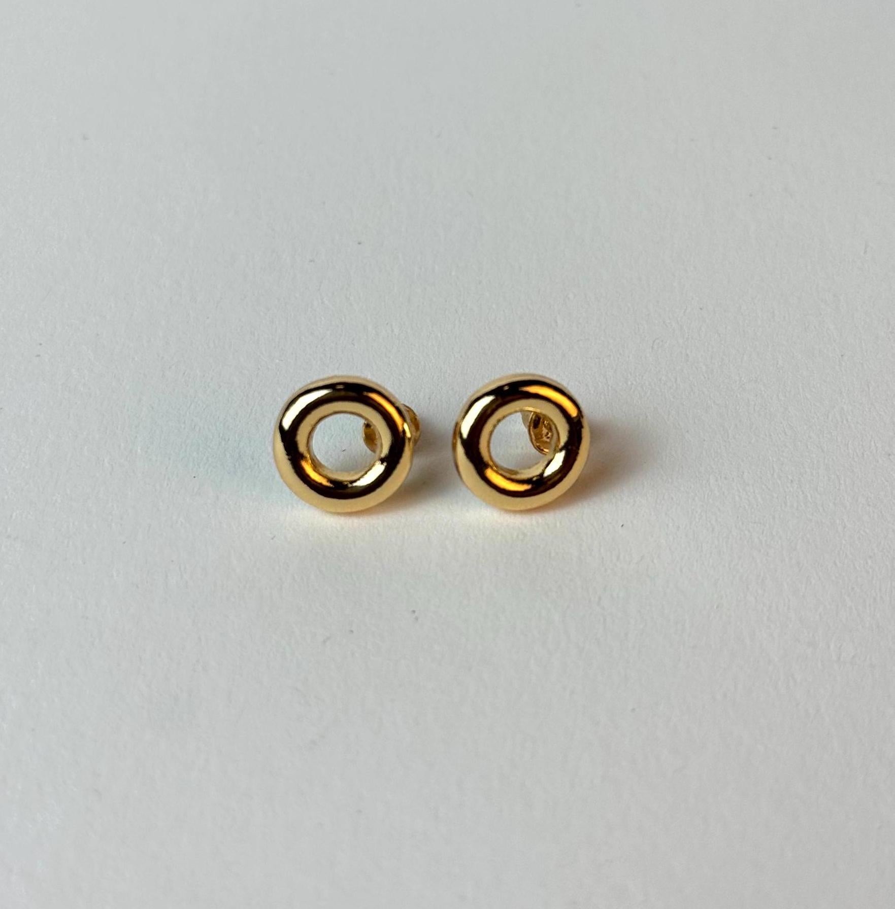 Add a touch of elegance to your everyday look with these 18K gold plated mini donut stud earrings. The unique circular design is both modern and minimalist, making these earrings versatile enough for any occasion. Perfect for those who appreciate subtle sophistication, these earrings are lightweight and comfortable for all-day wear.