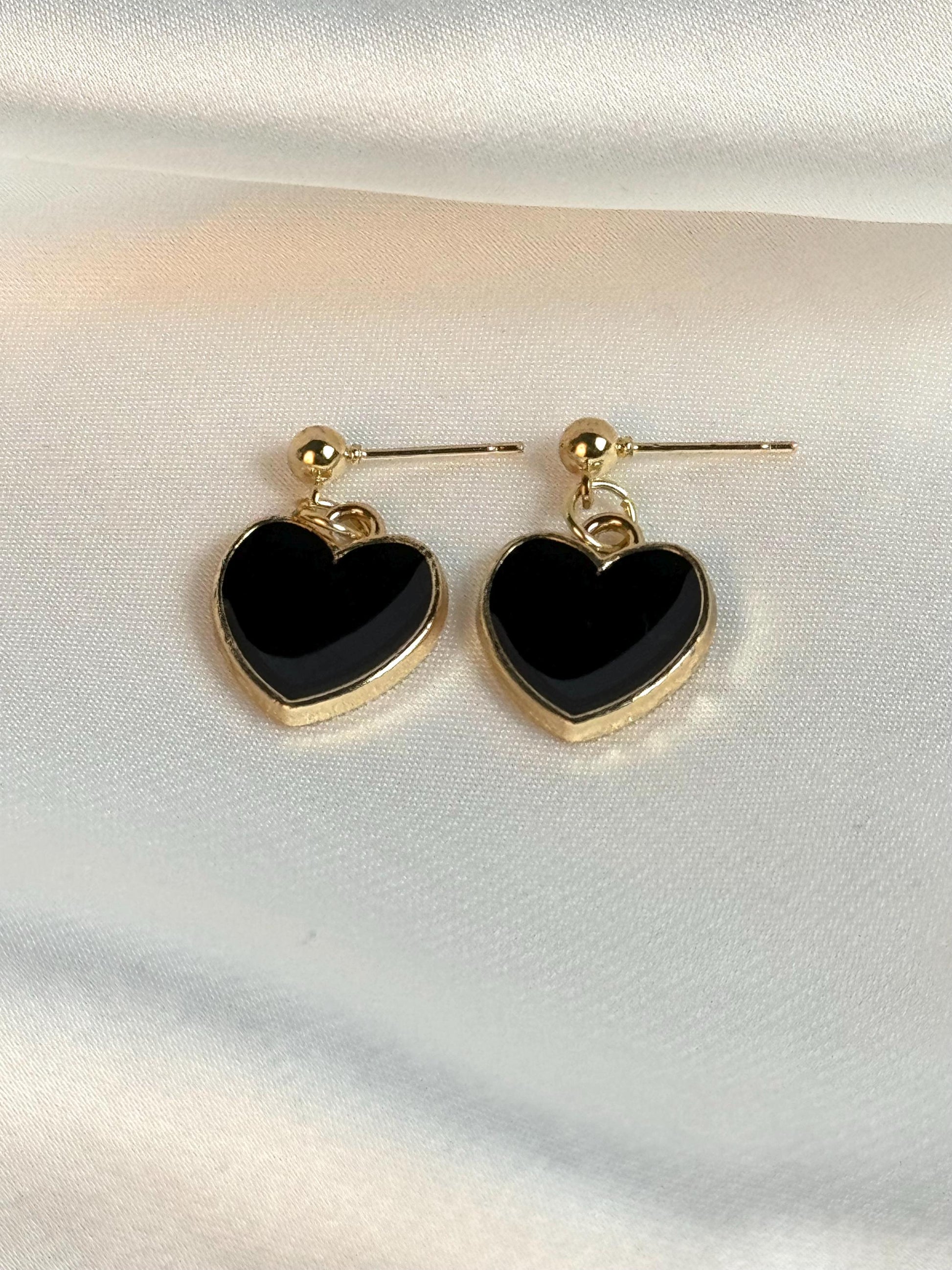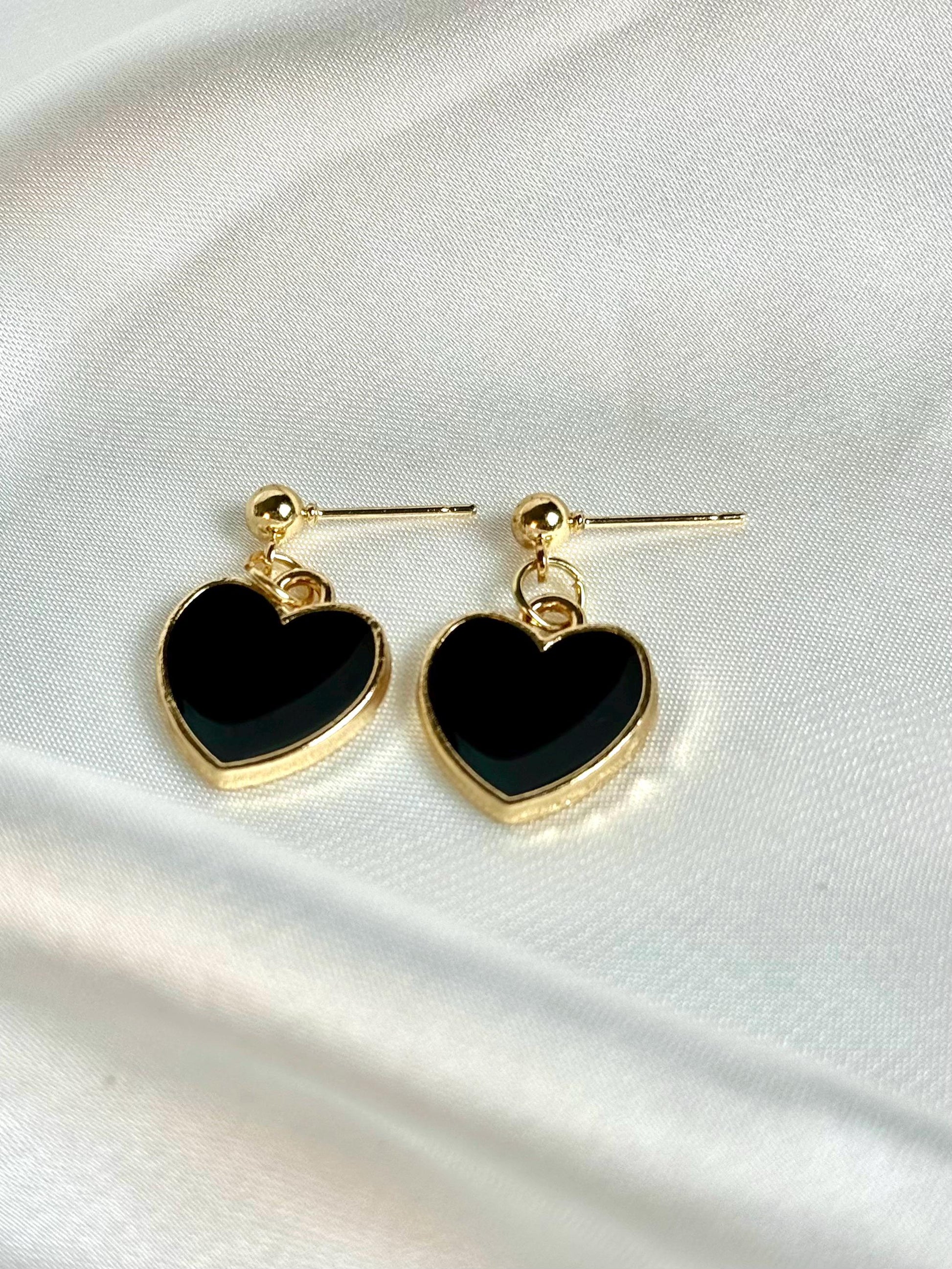 Black Heart Dangle Earrings