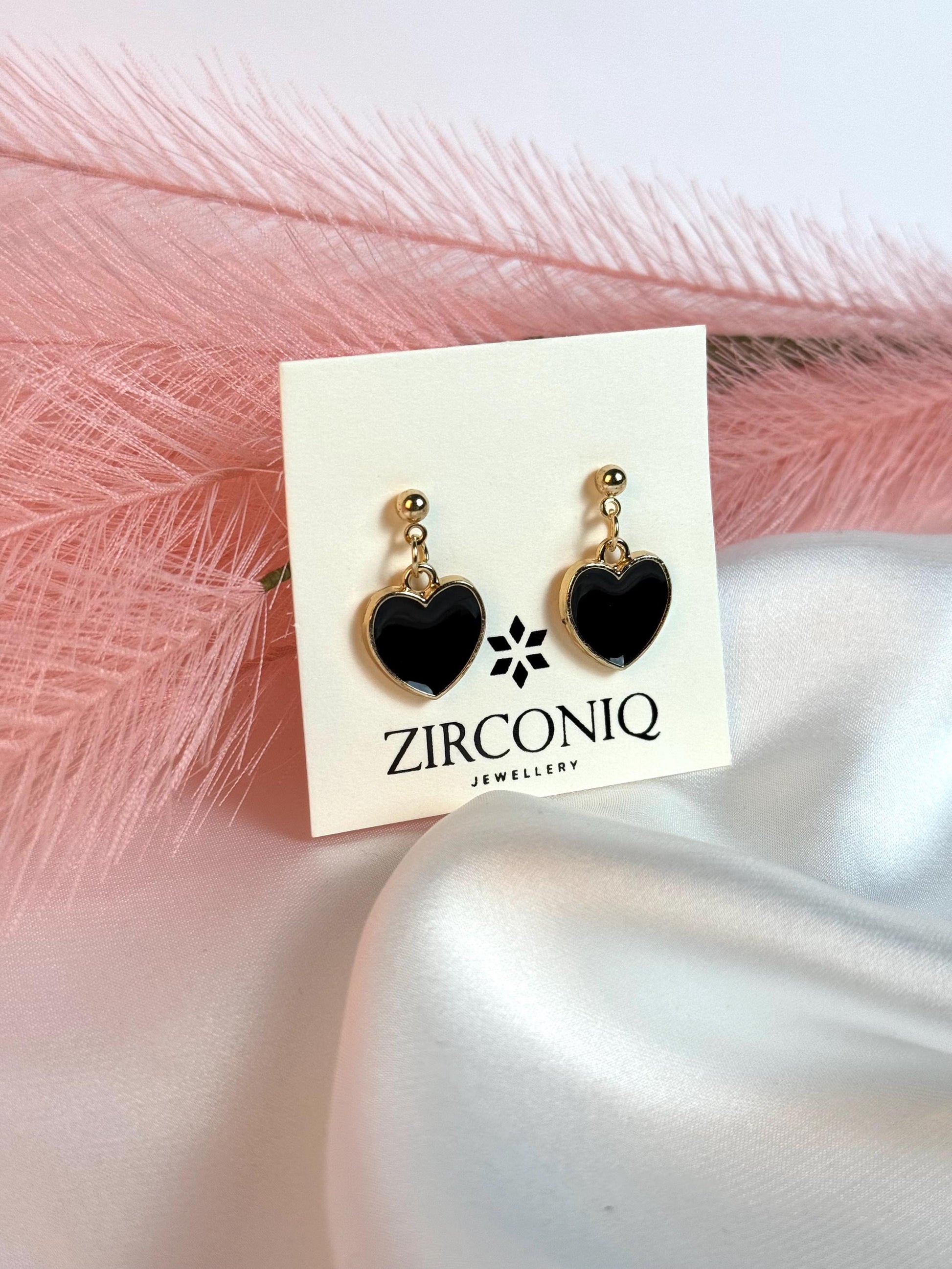 Celebrate love and style with these chic Black Heart Dangle Earrings, perfect for Valentine's Day or any special occasion. These earrings feature a glossy black heart pendant encased in a gold-plated frame, hanging elegantly from a dainty gold stud. Lightweight and comfortable to wear, these earrings add a touch of romance and sophistication to any outfit. Ideal as a gift for loved ones or a treat for yourself, they come beautifully packaged, ready for gifting.