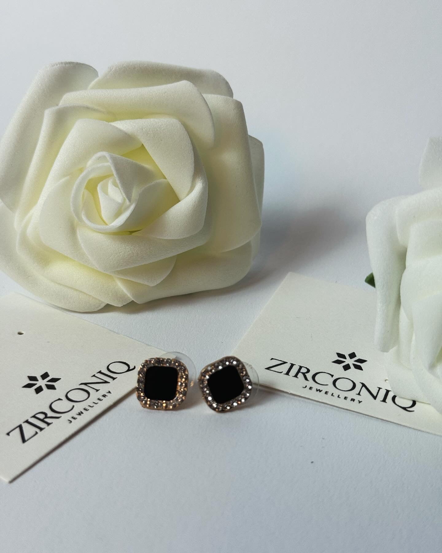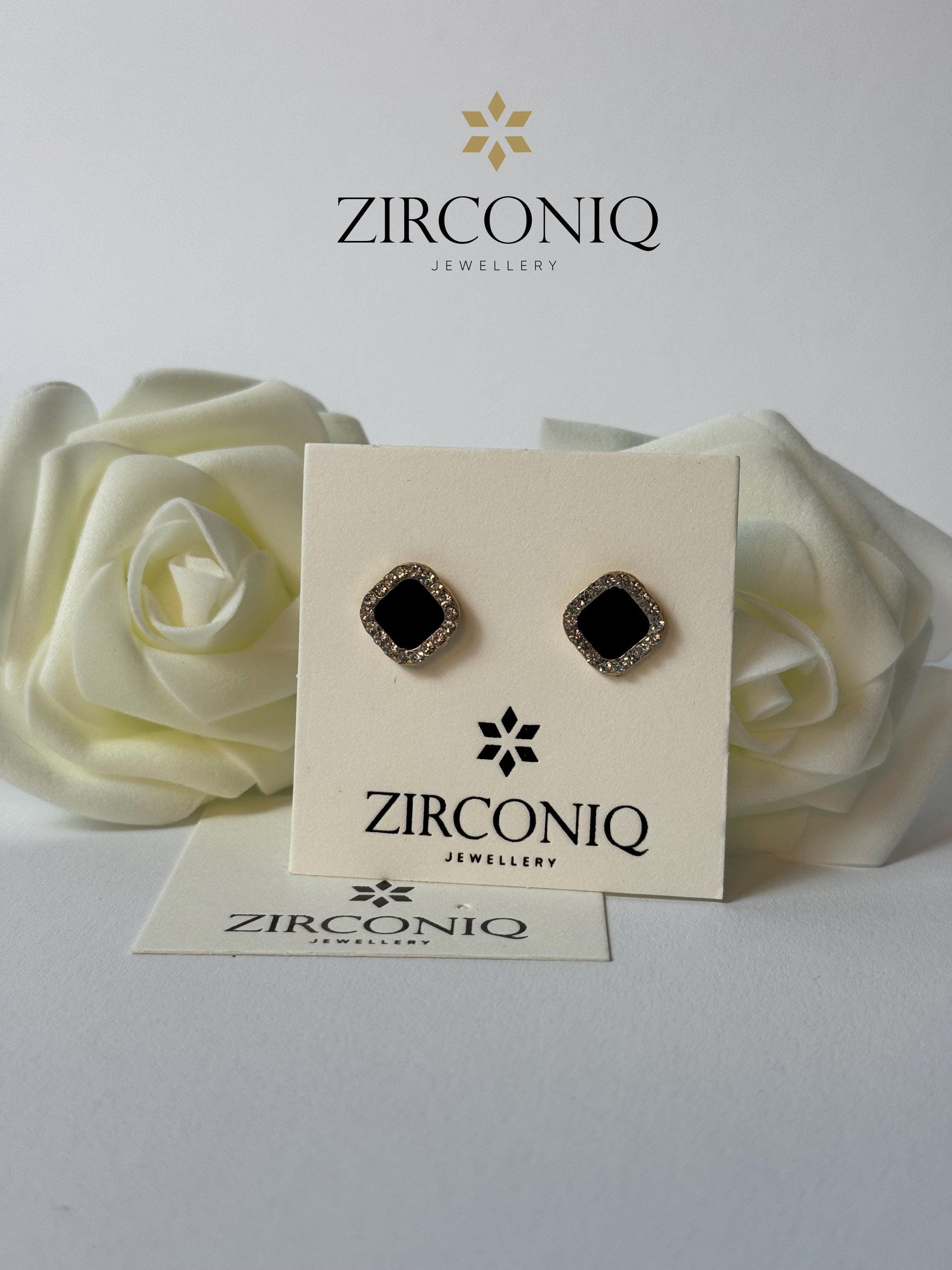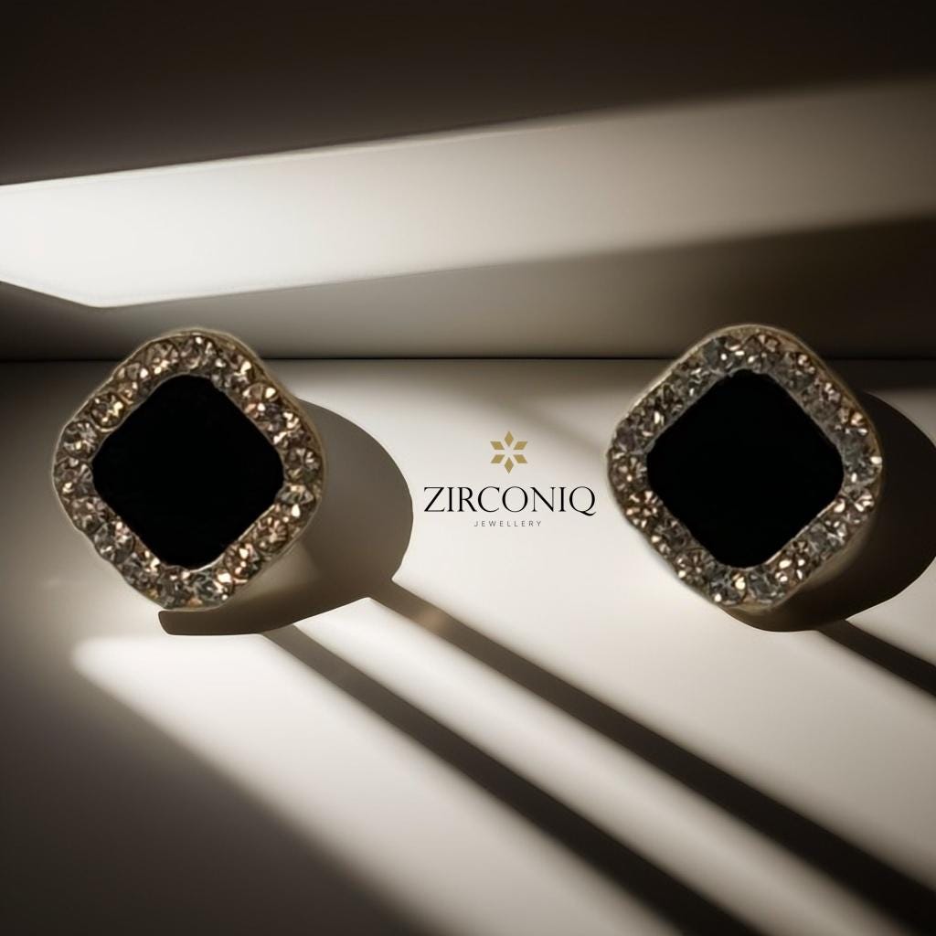 Design: Black square drop with a sparkling crystal border