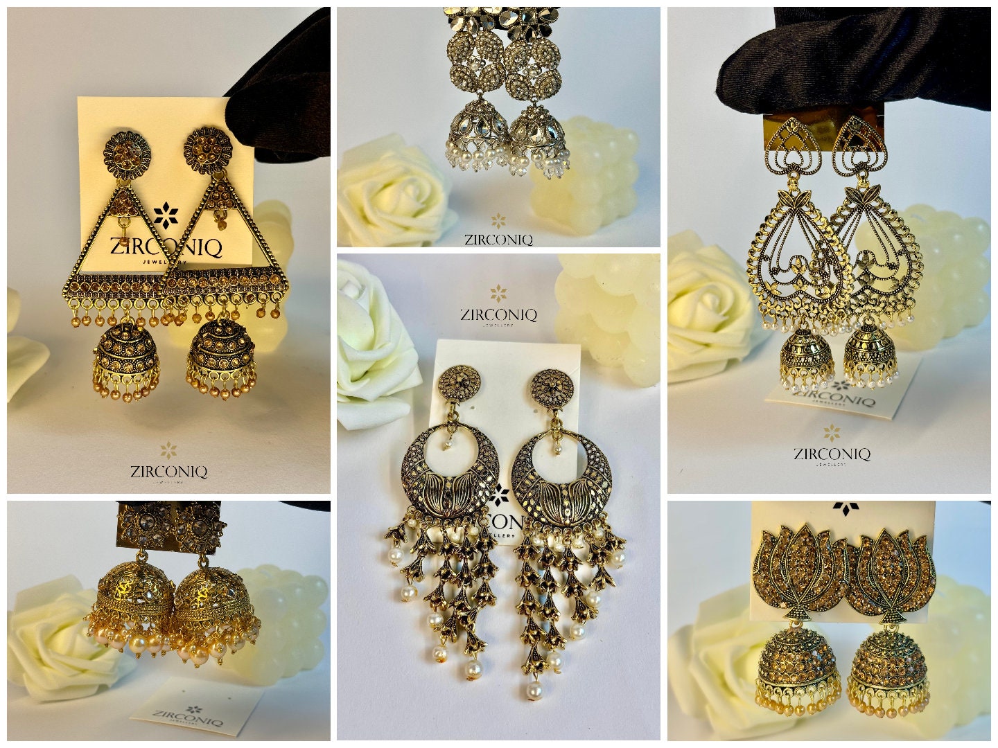 These exquisite earrings, sourced directly from Pakistan and shipped from Germany, are a perfect blend of elegance and comfort. Their lightweight design ensures all-day wearability, making them ideal for both everyday use and festive occasions. Measuring approximately from 4 to 6 cm in length with a 1.6 cm diameter at the stud, these earrings seamlessly complement any outfit, adding a touch of traditional charm and sophistication. This detailed craftsmanship is beautifully showcased in the accompanying images.