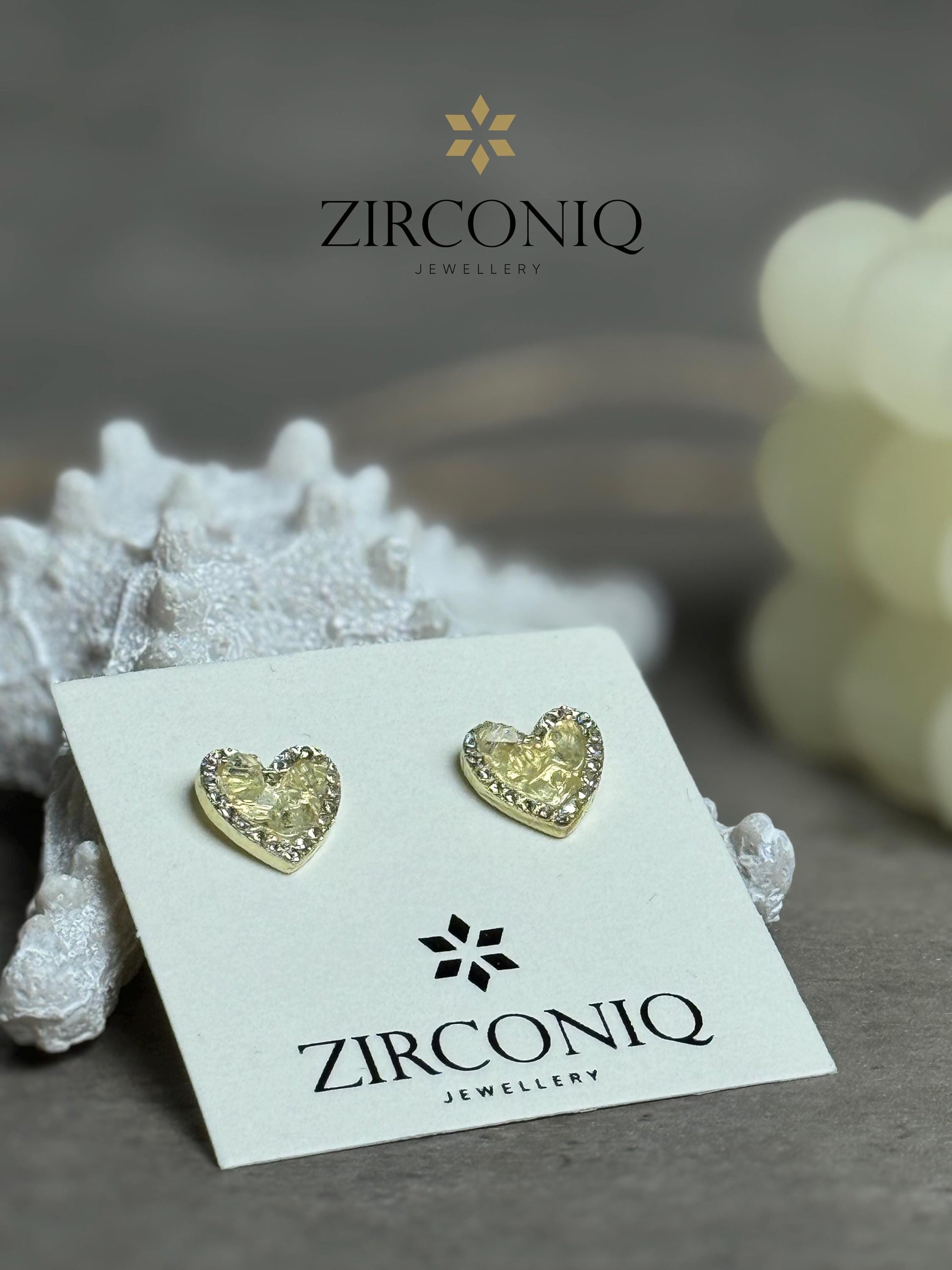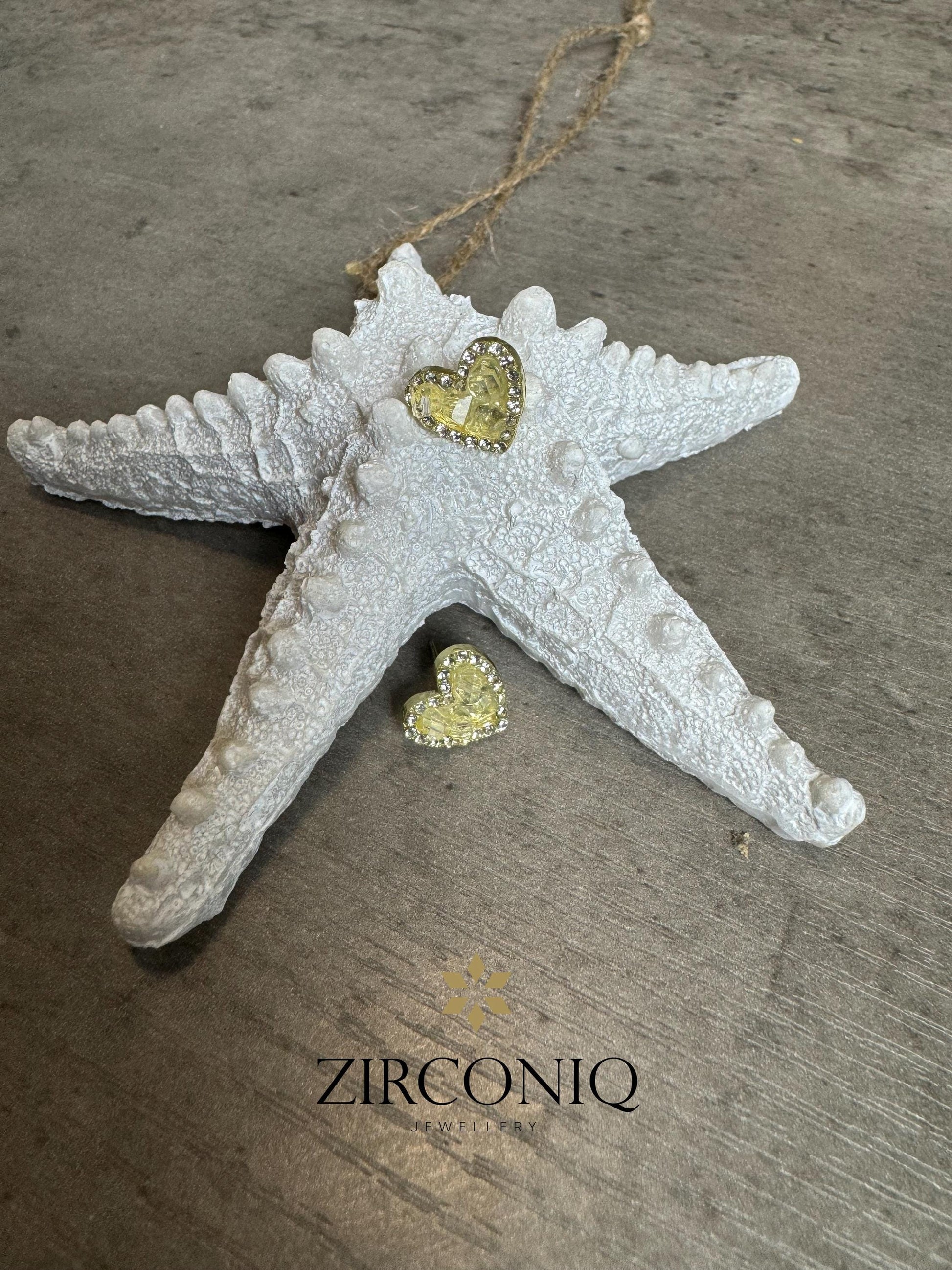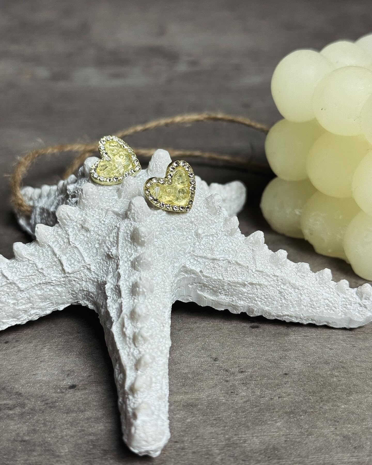 Design: Gold heart-shaped studs with a sparkling crystal border