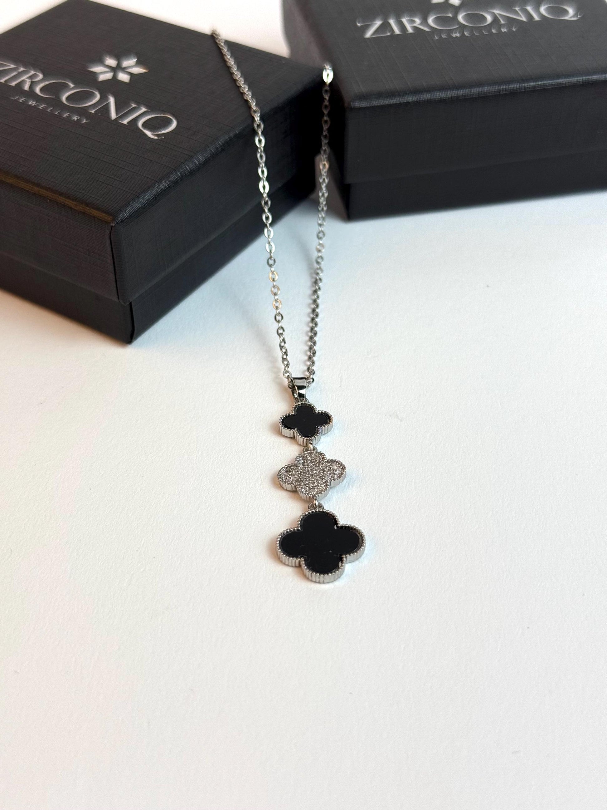 Enhance your style with this exquisite Stainless Steel pendant, featuring a sophisticated triple clover-shaped design by Zirconiq Jewellery. Lightweight and versatile, it’s the perfect accessory for both everyday wear and special occasions. The intricate beaded detailing around each clover adds a touch of luxury, making it a timeless addition to your collection.