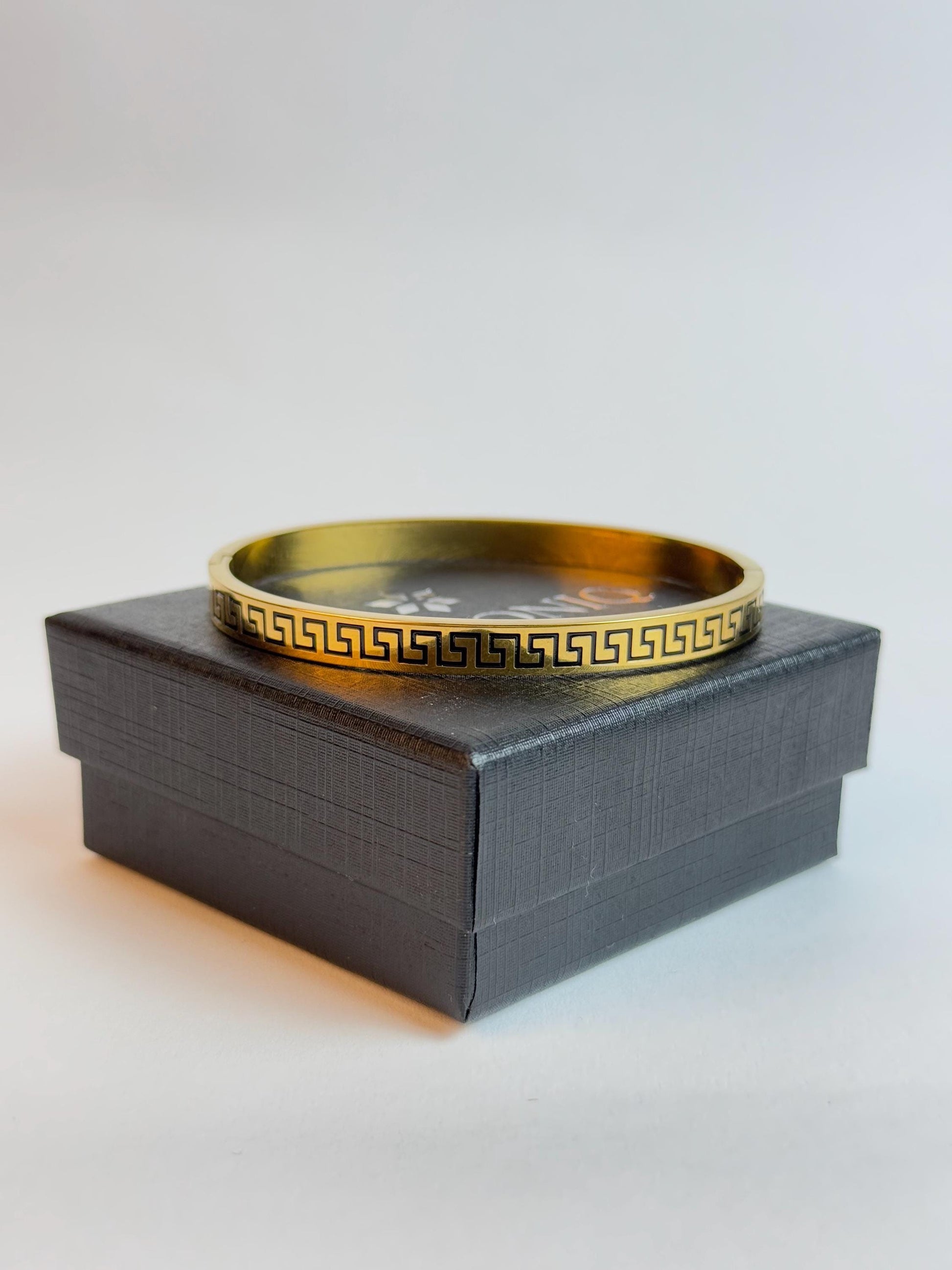 Add a touch of luxury to your look with this stainless steel bangle bracelet, featuring Stainless Steel Gold Plating for a sparkling finish. Designed for durability and elegance, this bracelet is tarnish-resistant, hypoallergenic, and water-resistant, making it perfect for everyday wear.