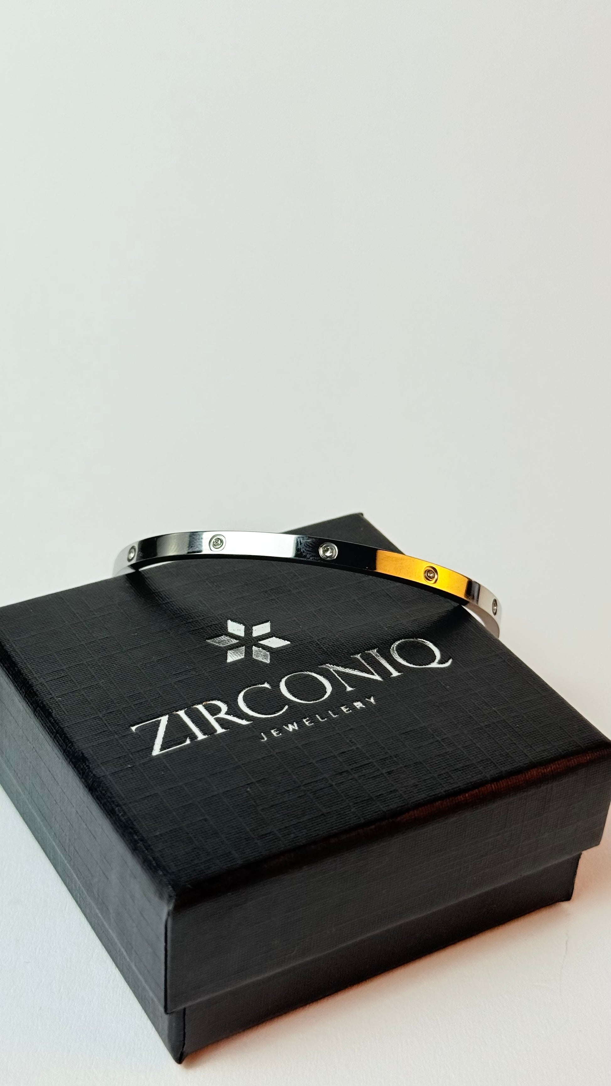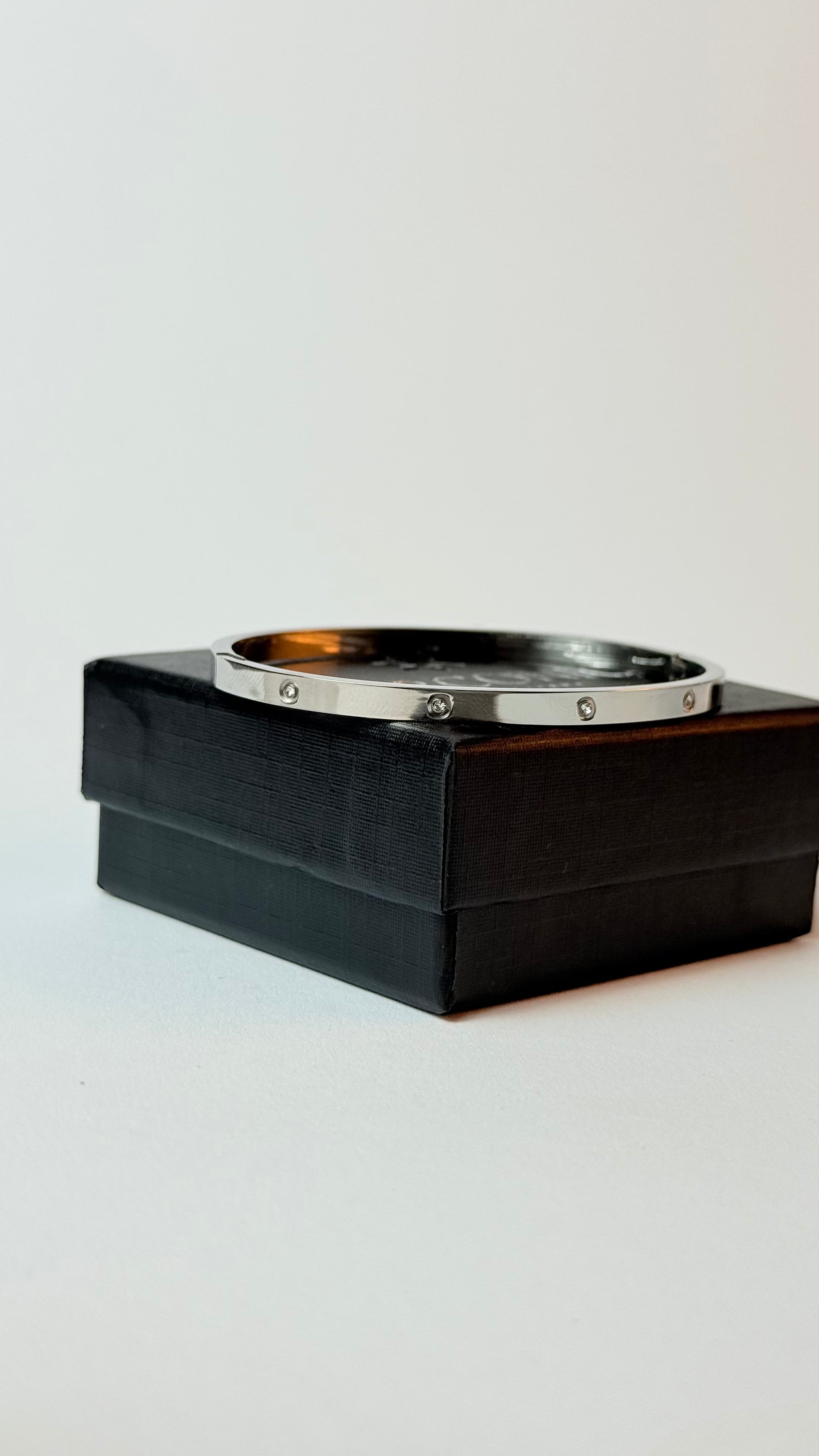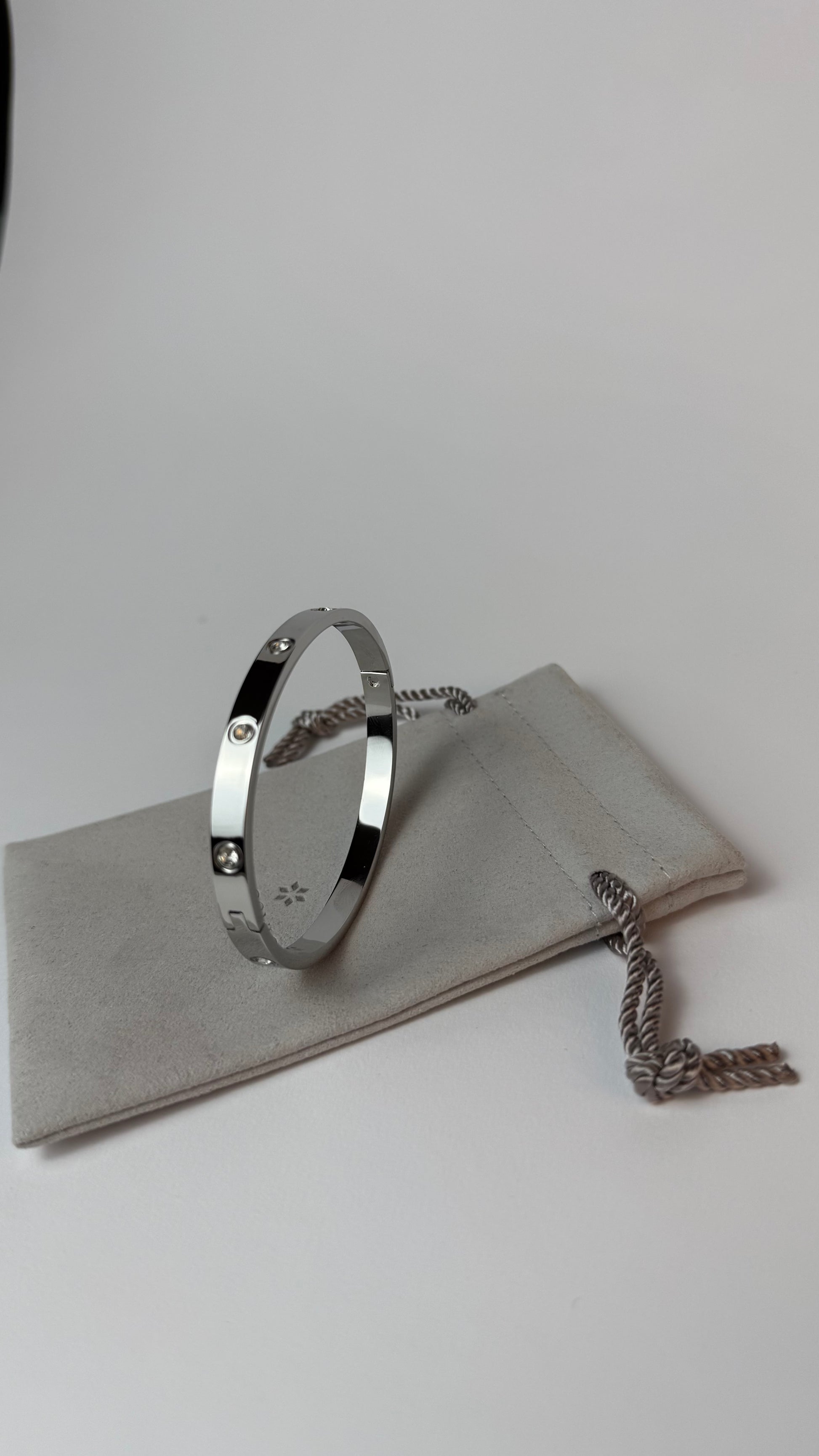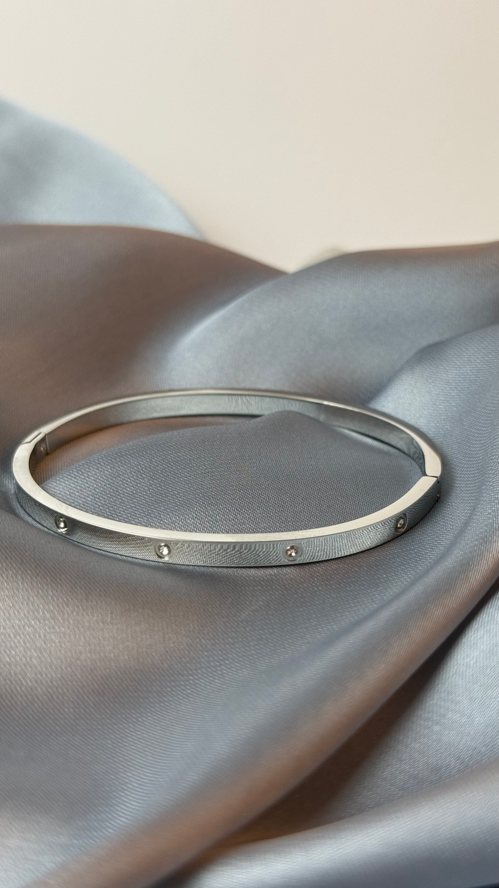 Zircon Studded Stainless Steel Silver Plated Bangle Bracelet - Silver